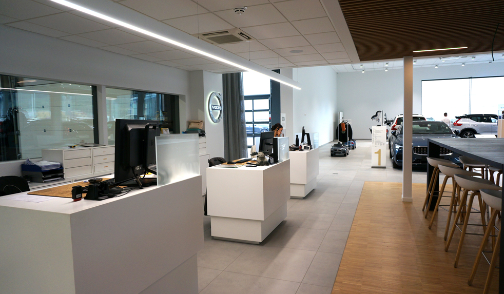L’aménagement intérieur a également été entièrement revisité pour correspondre aux standards de la marque. Le mobilier scandinave proposé par Volvo apporte la touche finale pour une cohérence parfaite entre modernité, confort et respect de l’environnement. Les matériaux utilisés sont, comme ceux des intérieurs de nos véhicules, recyclés, biosourcés et certifiés sans origine animale. Nous sommes vraiment heureux de pouvoir à nouveau vous accueillir dans les meilleures conditions après 7 mois de chantier où nous avons tout mis en œuvre pour perturber le moins possible nos services.